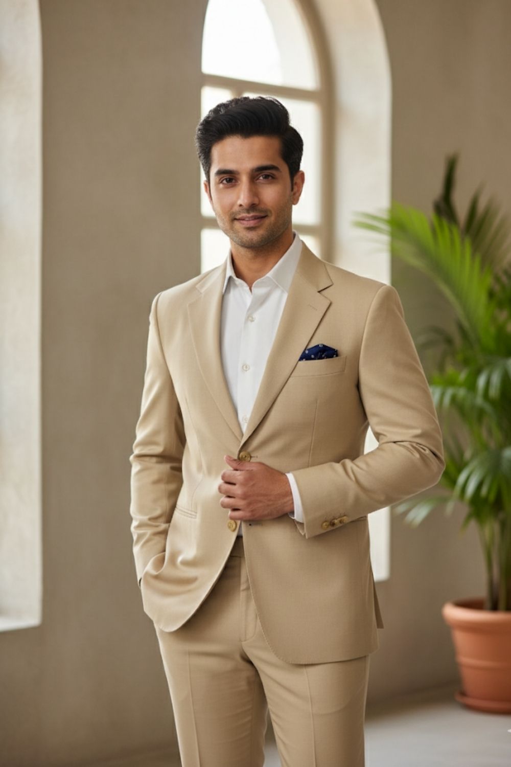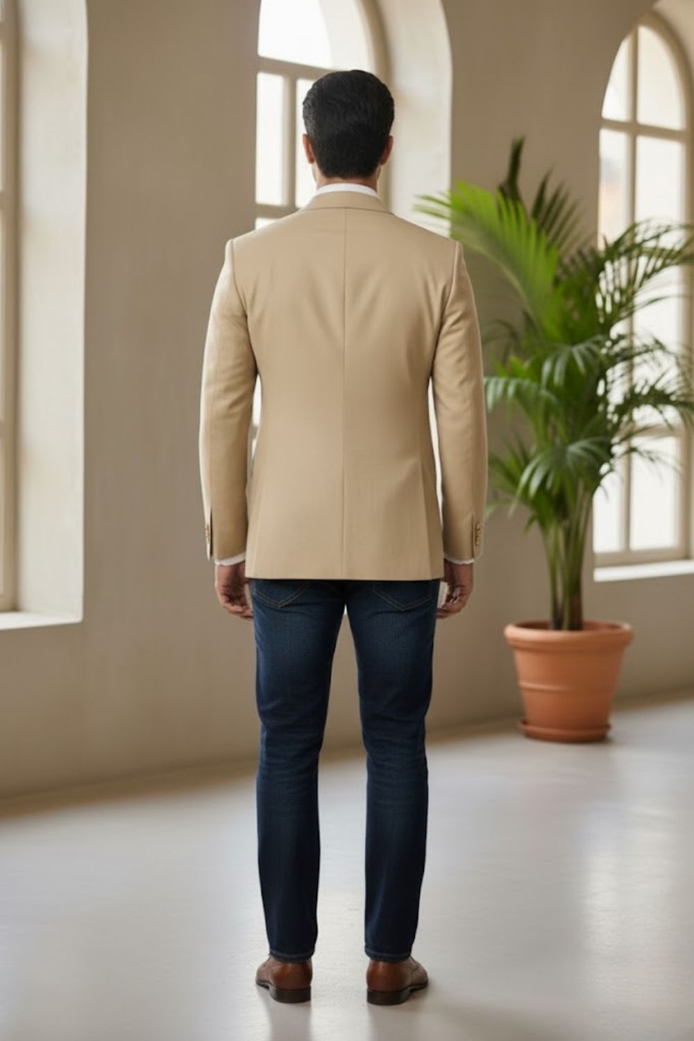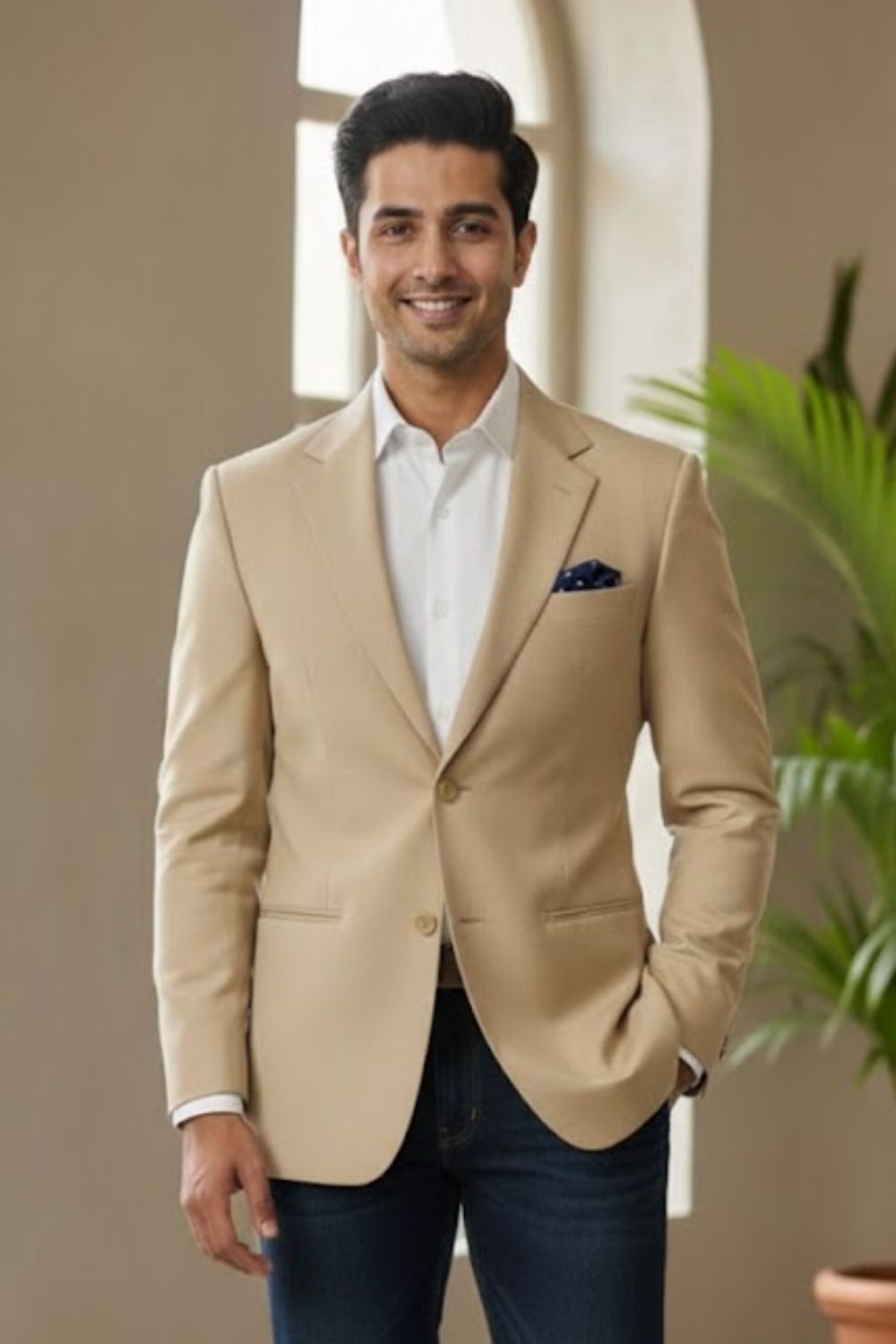 Rent this versatile Beige blazer, a timeless and sophisticated choice perfect for smart-casual events, business meetings, or weddings.