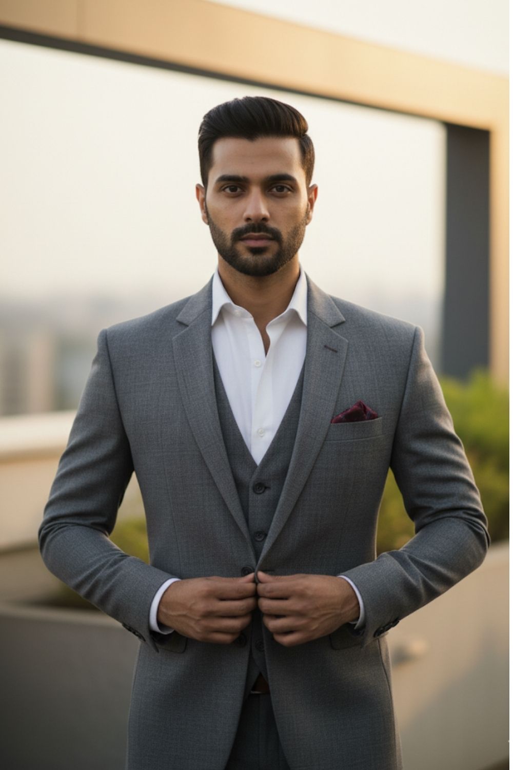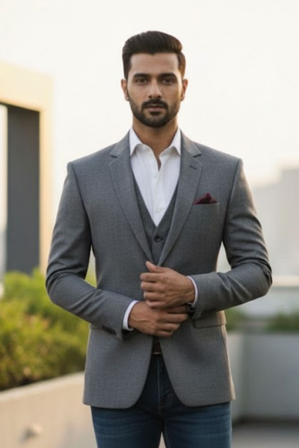 Rent this complete Dark grey blazer with waistcoat, a sleek and polished look for your next important event.