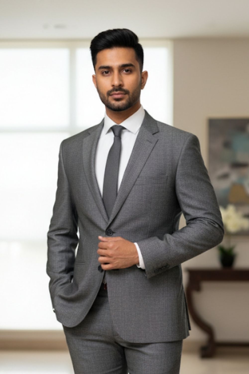 Rent this classic two-button blazer in light grey, with a fine Micro-Pattern woven into the textile for added texture and style.