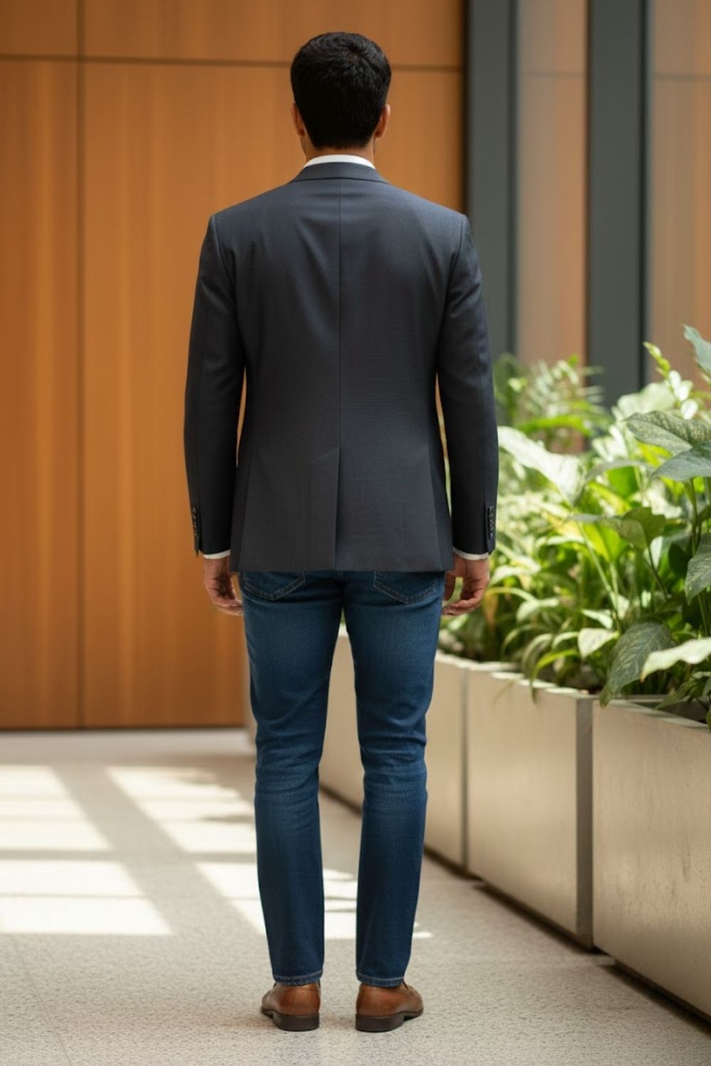 Rent this versatile charcoal grey blazer in structured suiting fabric, featuring a clean, with two-buttons closure, perfect for a smart-casual look.